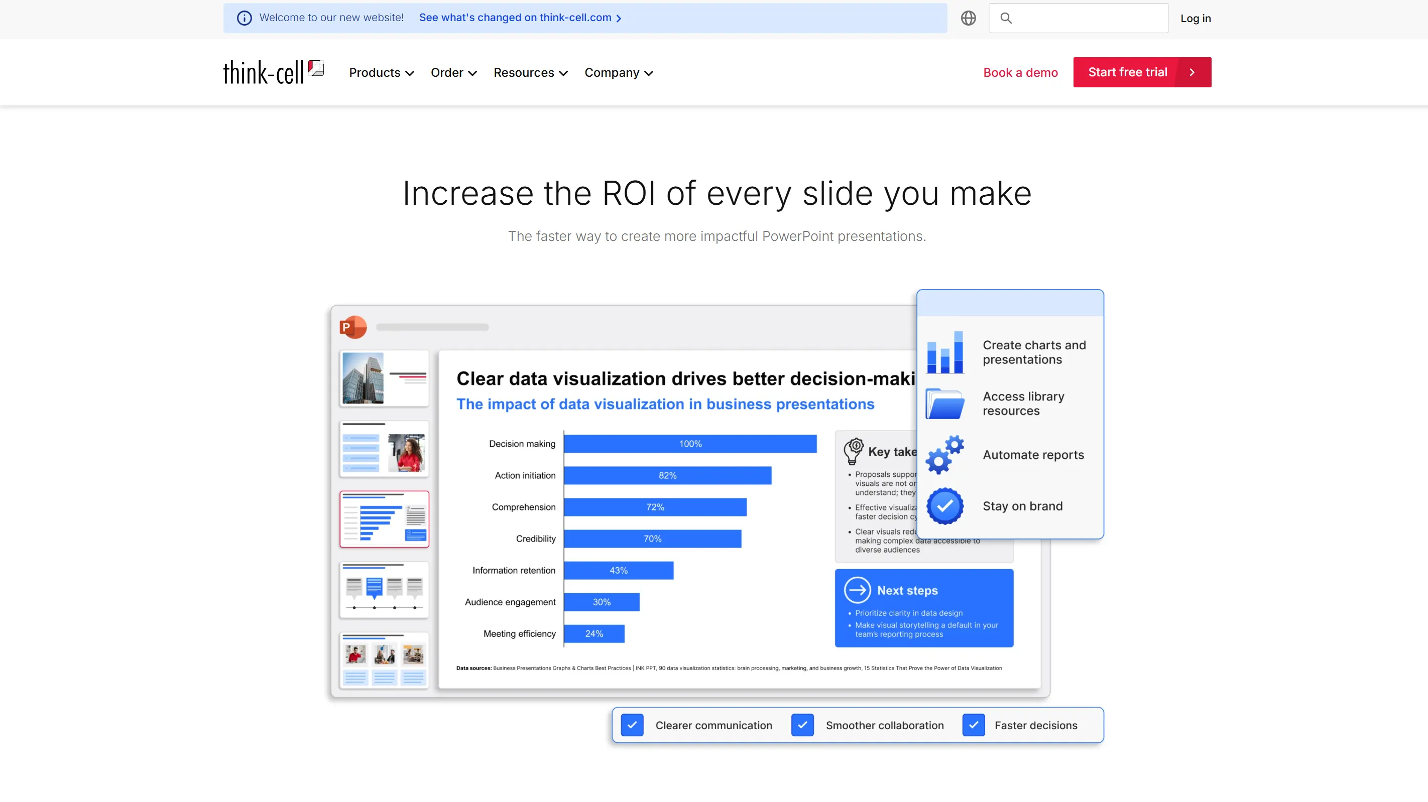 Thinkcell Design is a presentation company with a passion for making highly complex business information strategic, concise storytelling. Armed with the art of information visualization, it is best suited to dashboards, reports, and executive-overview presentations needing accuracy, brevity, and leadership alignment.